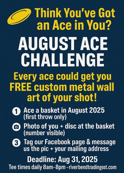 #RiverbendTradingPostDiscGolf #AceChallenge #HappinessHappensMonth #HitChainsNotTrees #GrowTheSport